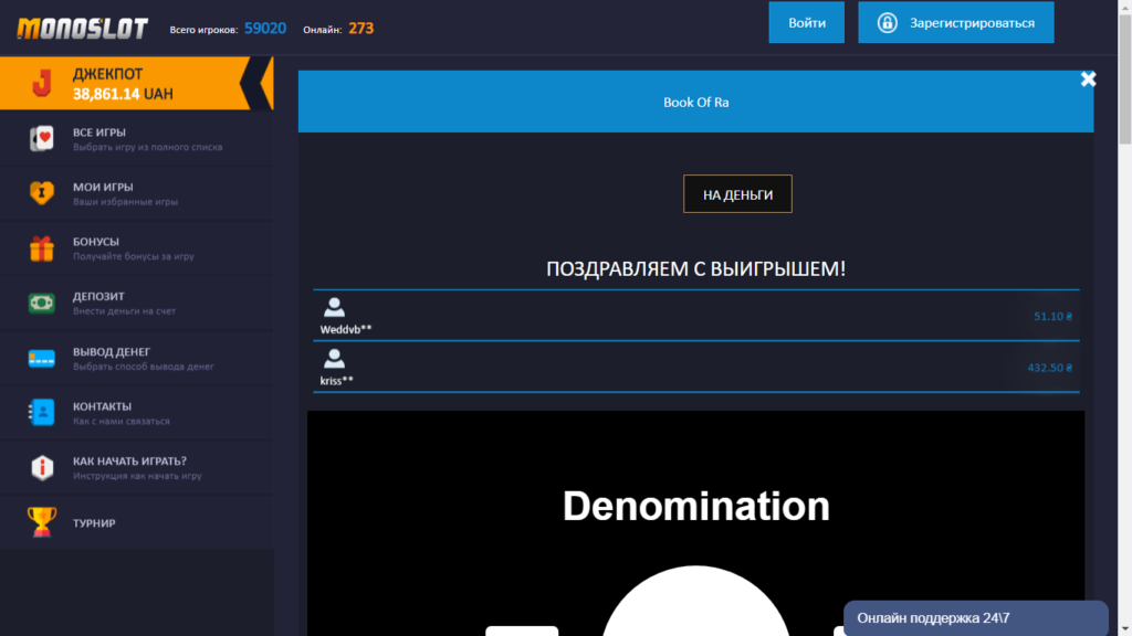 Онлайн казино Monoslot для игры на гривны – зарабатывай играючи